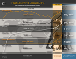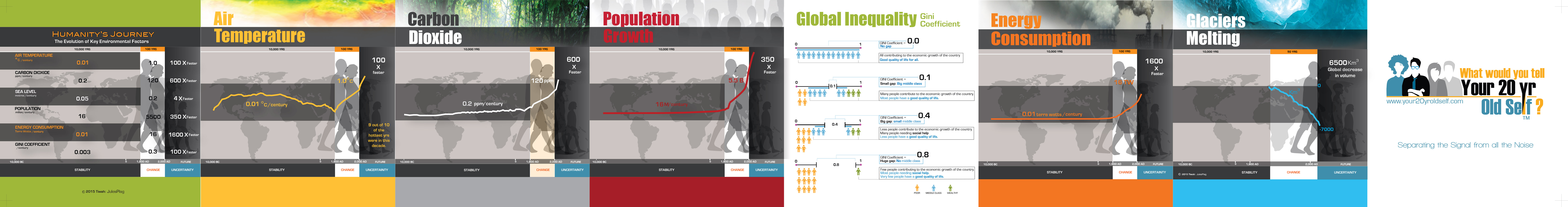 Humanity's Journey. Infographic communicates the rapid and large changes in essential variables of the Earth's life-support system and humanity during the last century compared to the average changes in the Holocene.