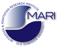 Logo of the Mitigation and Adaptation Research Institute, Old Dominion University, Norfolk, Virginia, USA. The image communicates that the long period of stable sea level is ending and the accelerating sea level rise is creating a large uncertainty about the future.